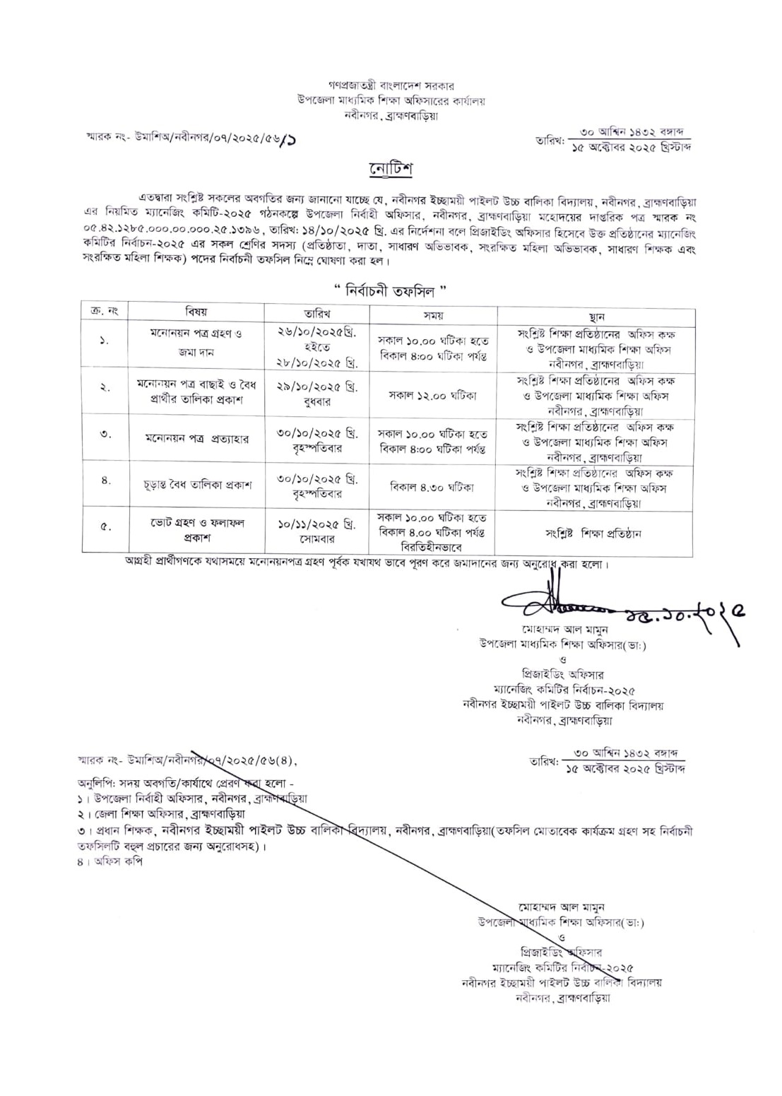 বিদ্যালয়ের ম্যানেজিং কমিটির নির্বাচন - ২০২৫ খ্রি. এর তফসিল