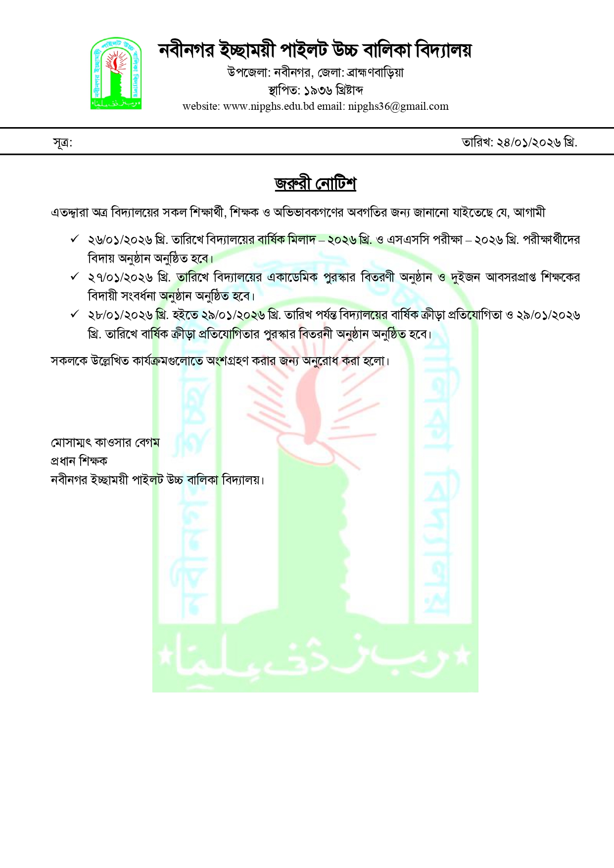 বার্ষিক মিলাদ, এসএসসি পরীক্ষার্থীদের বিদায়, একাডেমিক পুরস্কার, আবসরপ্রাপ্ত শিক্ষকের বিদায়, বার্ষিক ক্রীড়া ও পুরস্কার বিতরনী সংক্রান্ত