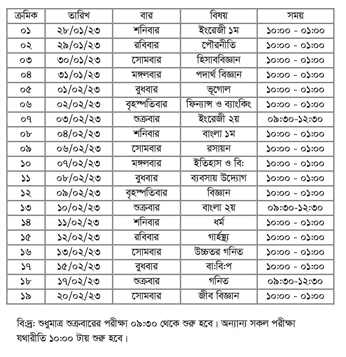 এসএসসি পরীক্ষা - ২০২৩ খ্রিস্টাব্দ এর শিক্ষার্থীদের মডেল টেস্ট পরীক্ষার সময়সূচী