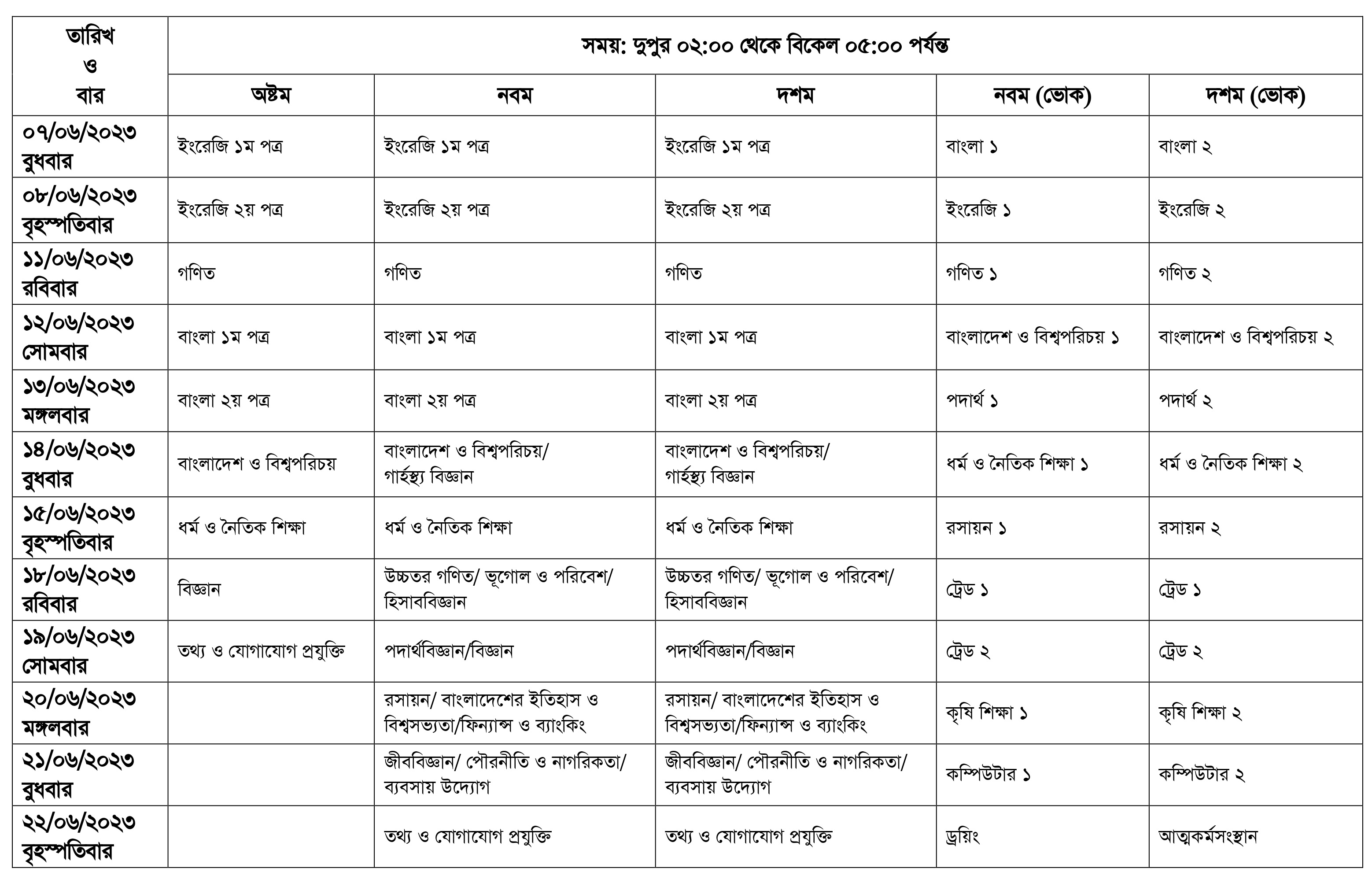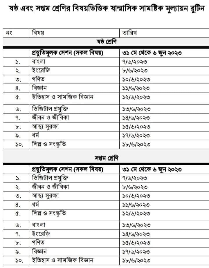 ষান্মাসিক মূল্যায়ন /অর্ধ-বার্ষিক/প্রাক-নির্বাচনী পরীক্ষার সময়সূচী - ২০২৩